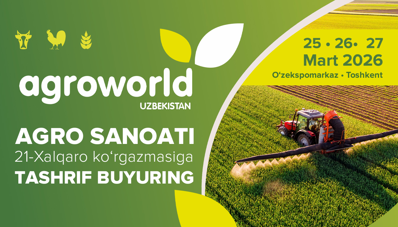 AgroWorld Uzbekistan: Qishloq xo‘jaligida kelajak texnologiyalari namoyishi O‘zbekiston iqtisodiyotining tayanch ustunlaridan biri bo‘lgan agrosanoat majmuasi yangi davrga qadam qo‘ymoqda. Joriy yilning 25, 26 va 27-mart kunlari sohaning eng intizorlik bilan kutilgan voqeasi — AgroWorld Uzbekistan xalqaro ko‘rgazmasi bo‘lib o‘tadi. Bu shunchaki tadbir emas, balki zamonaviy agrar biznesning yuragi uradigan maydonidir. Innovatsiyalar markazida nimalar bor? Ko‘rgazma ishtirokchilari qishloq xo‘jaligining barcha zanjirlarini qamrab olgan yetakchi korxona va tashkilotlardir. Tashrif buyuruvchilar quyidagi yo‘nalishlar bo‘yicha eng so‘nggi yutuqlar bilan tanishishlari mumkin: • Texnika va mexanizatsiya: Zamonaviy traktorlar, kombaynlar va aqlli ehtiyot qismlar. • Chorvachilik va parrandachilik: Naslchilik ishi, ozuqa bazasini mustahkamlash va parvarishlashning avtomatlashtirilgan tizimlari. • O‘simlikchilik va veterinariya: Hosildorlikni oshiruvchi innovatsion o‘g‘itlar, himoya vositalari va hayvonlar salomatligi uchun sifatli preparatlar. • Logistika va saqlash: Mahsulotlarni nobud qilmasdan qayta ishlash, tashish va uzoq muddat saqlash imkonini beruvchi texnologiyalar. Nima uchun ushbu ko‘rgazmaga borish shart? AgroWorld Uzbekistan — bu nafaqat texnika tomoshasining joyi, balki katta biznes imkoniyatlari demakdir. Ko‘rgazma doirasida: 1. To‘g‘ridan-to‘g‘ri muloqot: Mahalliy va xorijiy ishlab chiqaruvchilar bilan vositachilarsiz shartnomalar tuzish; 2. Tajriba almashish: Dunyo bo‘ylab qo‘llanilayotgan "Aqlli dehqonchilik" (Smart Farming) uslublarini o‘rganish; 3. Yangi bozorlar: Eksport va import imkoniyatlarini kengaytirish uchun yangi hamkorlar topish imkoniyati mavjud. Eslatib o‘tamiz: Qishloq xo‘jaligi mahsulotlarini qayta ishlash va saqlash texnologiyalari bugungi kunda sohadagi eng daromadli yo‘nalishlardan biri hisoblanadi. Tadbir tafsilotlari: • Sana: 25, 26, 27-mart • Asosiy e'tibor: Samaradorlikni oshirish va resurslarni tejash. Agrosanoat olamidagi eng so‘nggi tendensiyalardan ortda qolmaslik va biznesingizni yangi bosqichga olib chiqish uchun AgroWorld Uzbekistan’ga tashrif buyuring!
