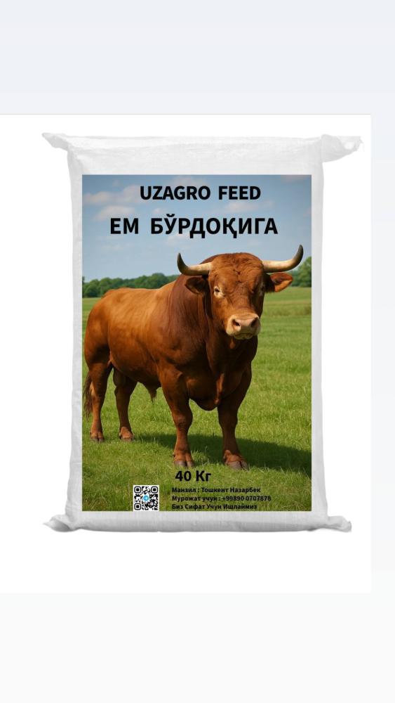 OOO "UZAGRO FEED" Ем Маҳсулотларни Таклиф Қилади Ем турлари ва нархлари: - ЕМ Бўрдоқига — 1Кг = 3600 сўм - ЕМ Соғин Сигирга — 1Кг = 3600 сўм - ЕМ Унивесал — 1Кг = 3600 сўм - Балиқ Ем — 1Кг = 4600 сўм Таркиби: Бўгдой, Арпа, Макка жохори, Писта шроти, Сули, (Шрот, Кунжара) Кепак, Сўхой Барди, Премикс+Витамин, Минералная добавки, Туз Манзил: Тошкент Назарбек Чорва фермерлар ва ем сотиш шахобчаларни ҳамкорликни таклиф қиламиз. Тўлов тури: Нахт, Перечисления (Click, payme, пластик карта) Ҳамма вилоятлар учун доставка хизматимиз бепул. "Биз сифат учун ишлимиз" Контакты: +998900707878